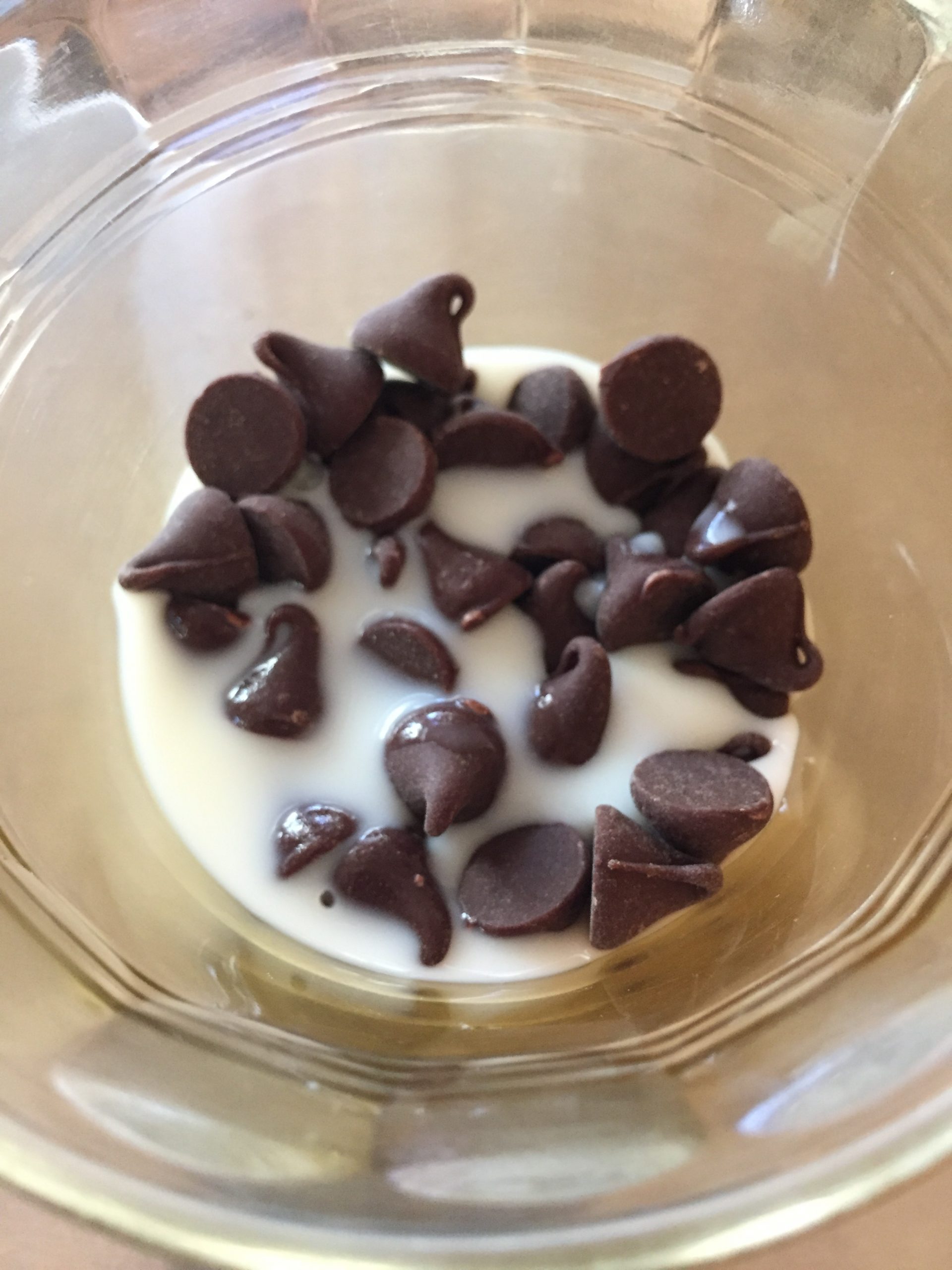 • Add milk to the chocolate chips in a small microwave-safe bowl.