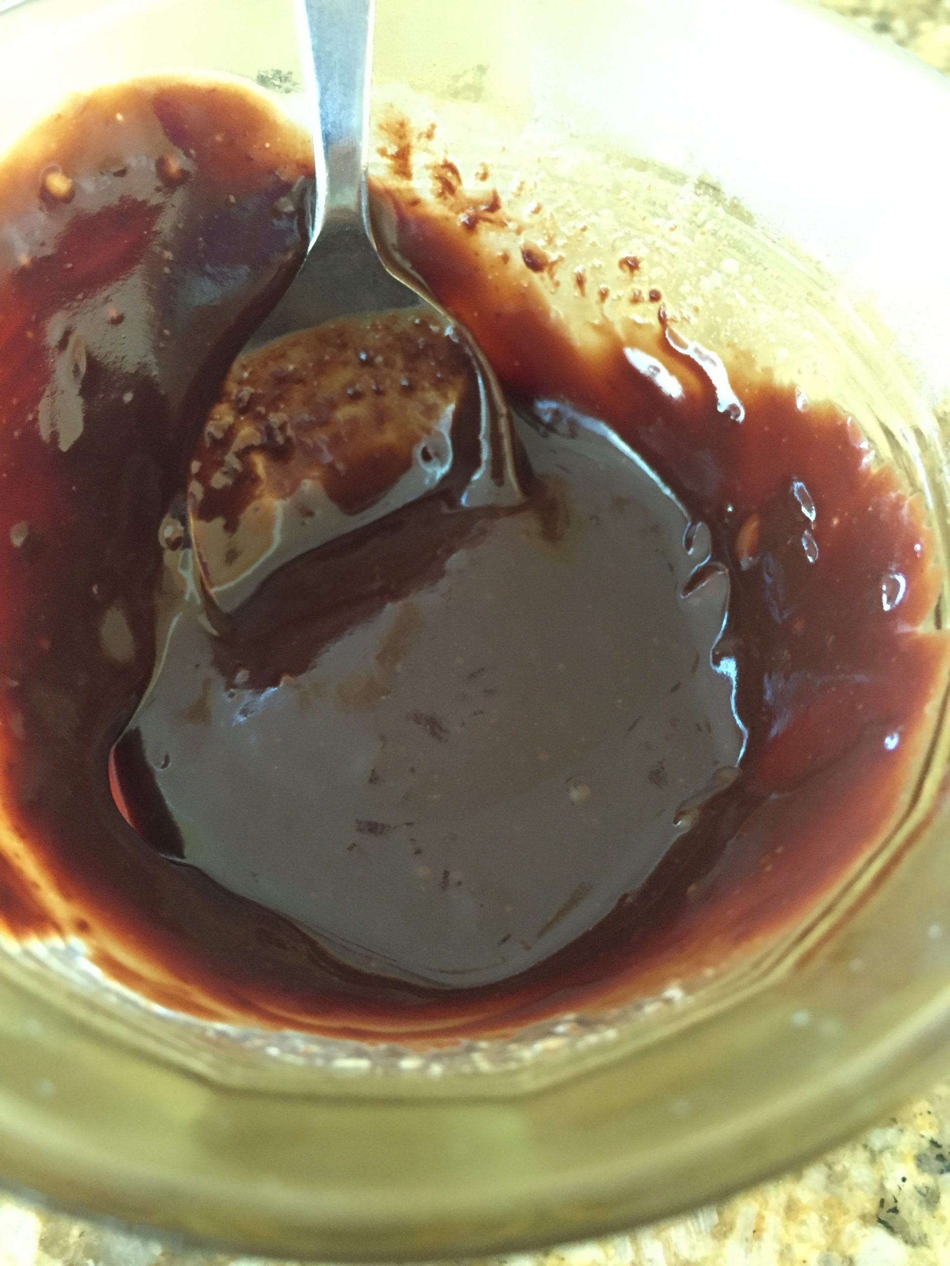 Simple gooey, fudgy chocolate sauce made in the microwave
