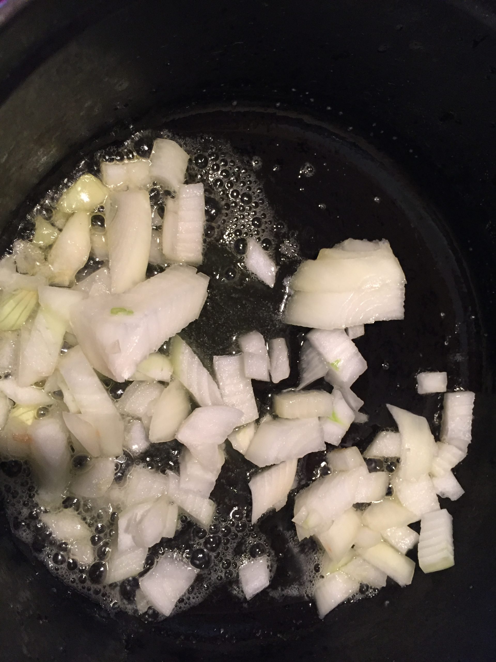 - Saute onion until translucent and browning.