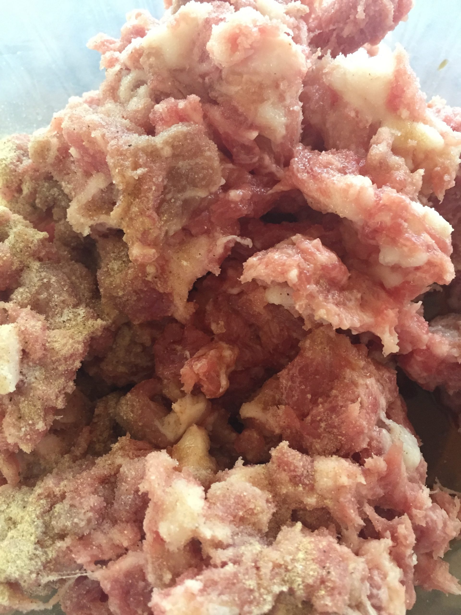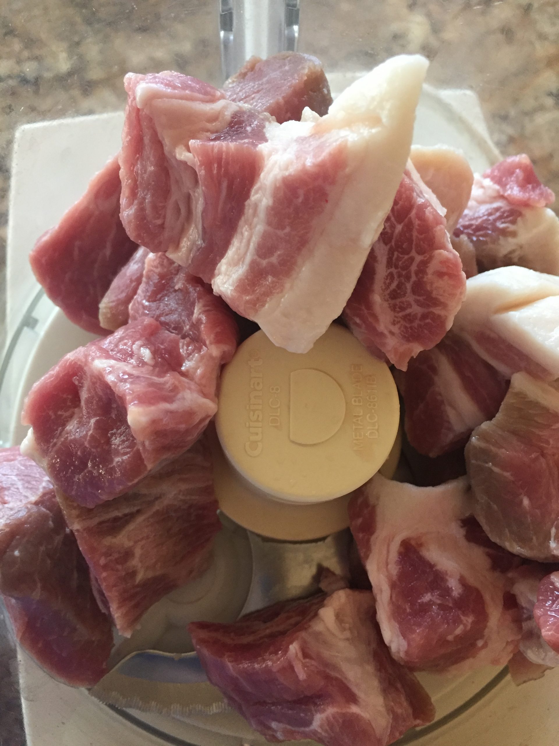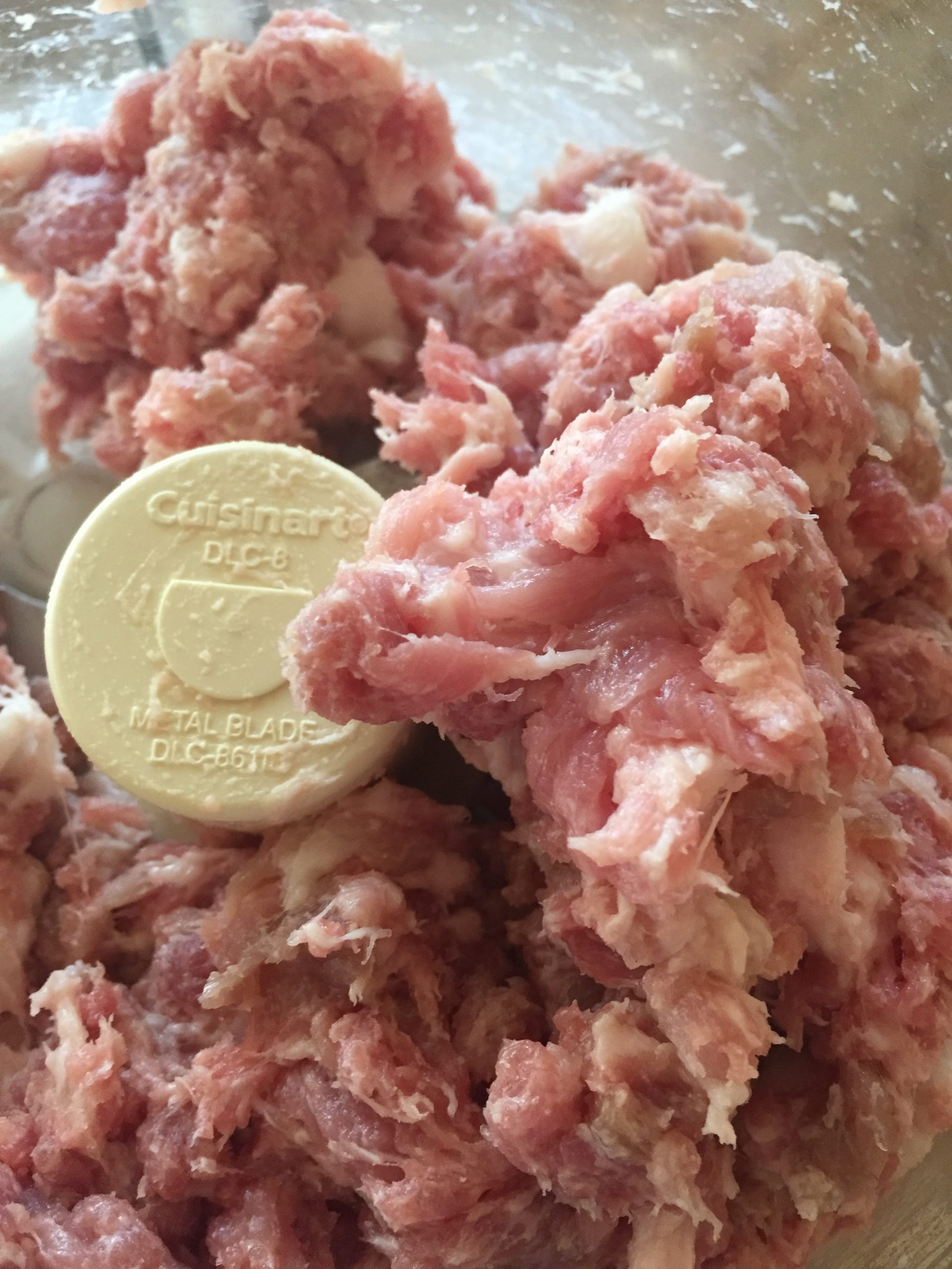 For this recipe, some fat is required, but too much fat is unhealthy, so you decide how tasty / healthy you want to make this! I usually "grind" my own pork with a food processor. A food processor works better than trying to grind the pork with a hand blender. However, I was once desperate and actually ground the pork with smoothie blender! Grinding my own pork allows it to be a lot chunkier than store bought ground pork. I also feel that store bought ground pork appears white, which means a lot of fat! There are some Asian markets where you can pick your piece of meat and they will grind it for you. I have also learned that, if you know how to communicate with them, you can actually request a coarse or fine ground!