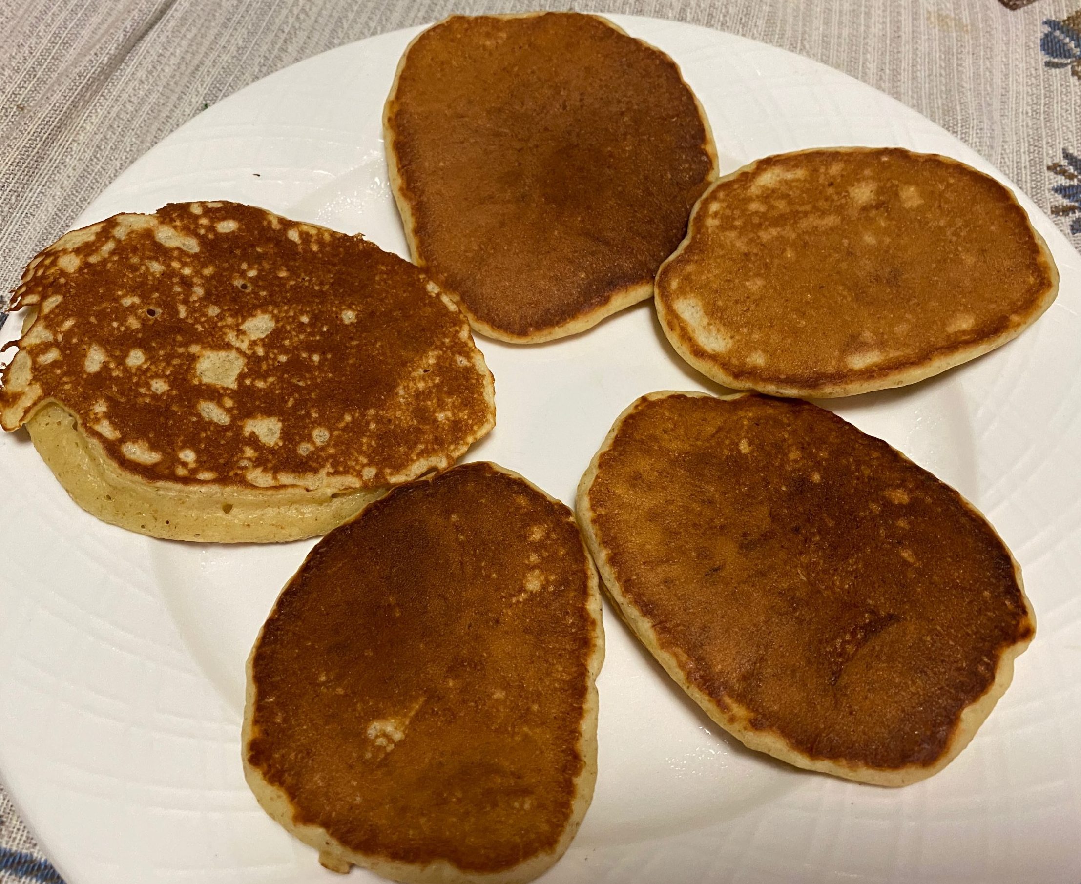 Someone recently sent me a picture of pancakes that she recently made with starter discards. She said the taste was better than the looks. I looked at the picture she sent me (below left) and knew exactly what she was doing that gave her the uneven, mottled pancake. I was able to replicate the technique she used (above left pancake) as well as show her how to achieve a smooth, uniform, golden pancake (above right). The next time she made pancakes with my suggestion, she sent me a picture of how the pancakes turned out. (below right)