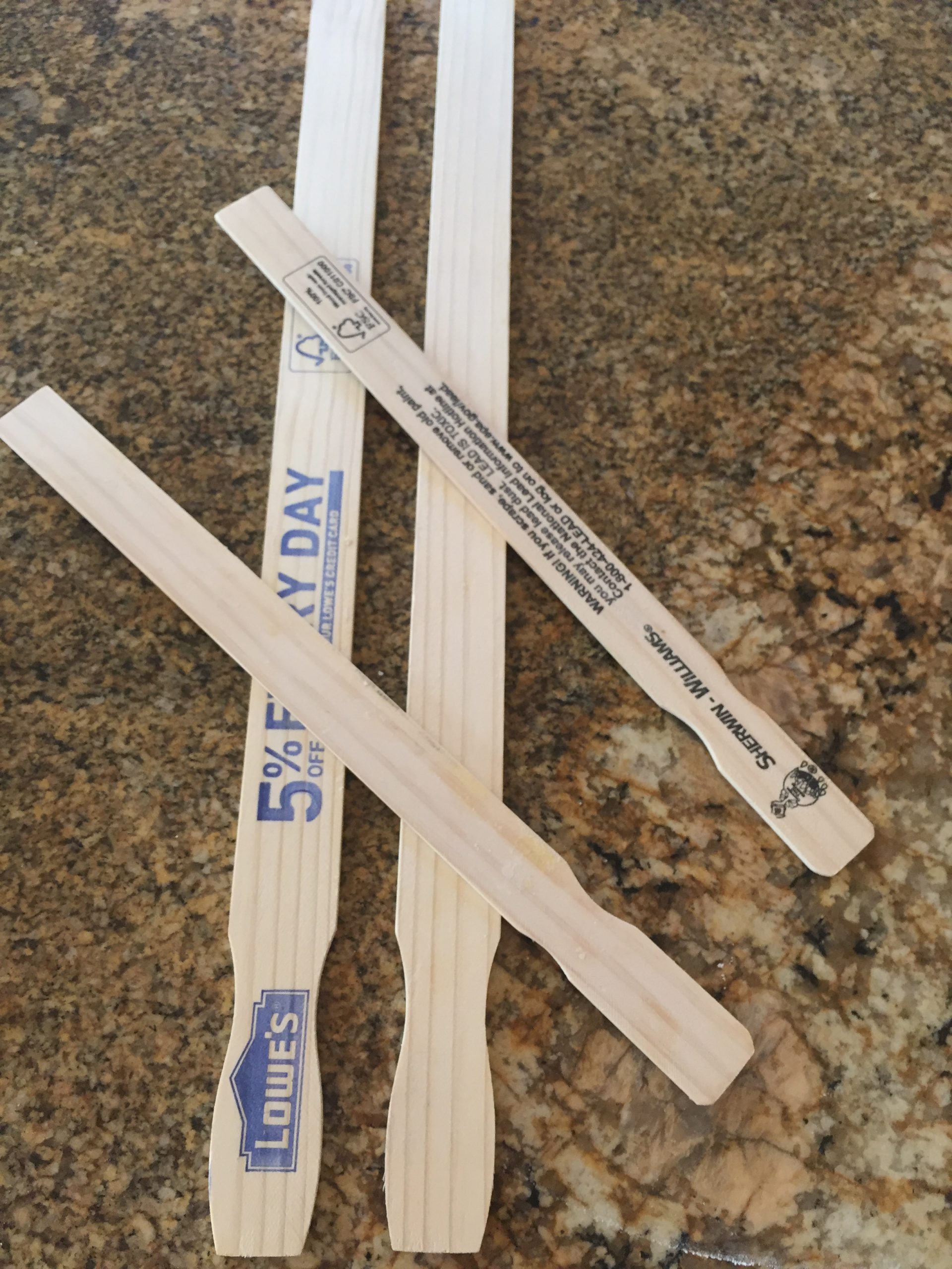 With these free paint sticks, you will need to make sure that the surfaces are smooth without any wood splinters. Use a fine sandpaper and run it along all the edges to ensure there are no wood splinter. You can even measure out your measurements and mark it with a permanent marker.