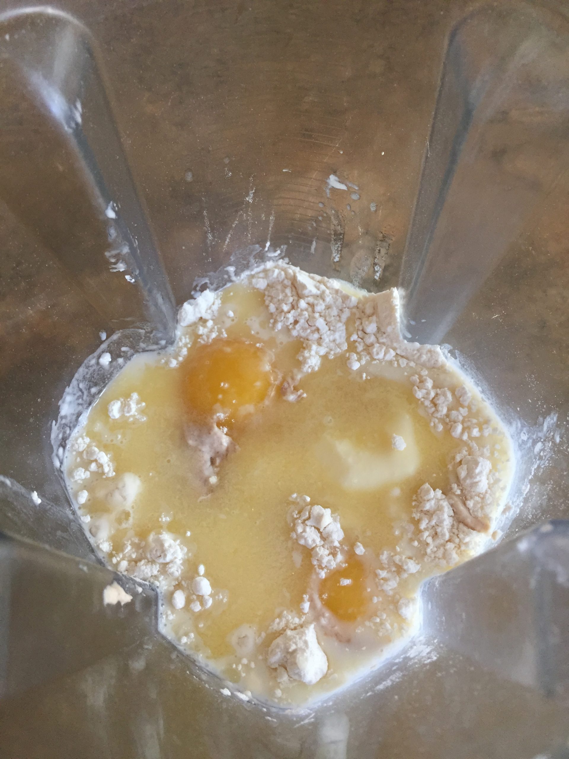 I make my batter in a vitamix blender. This "Low profile" vitamix was a birthday gift for my husband. I have to admit that I use it a lot more than him! See helpful tools. It takes less than a minute. A good tip when using a blender is to make sure you add your liquid ingredients first before your solids or else the solids will get stuck beneath the blade, leaving you with dry, unmixed ingredients at the bottom.