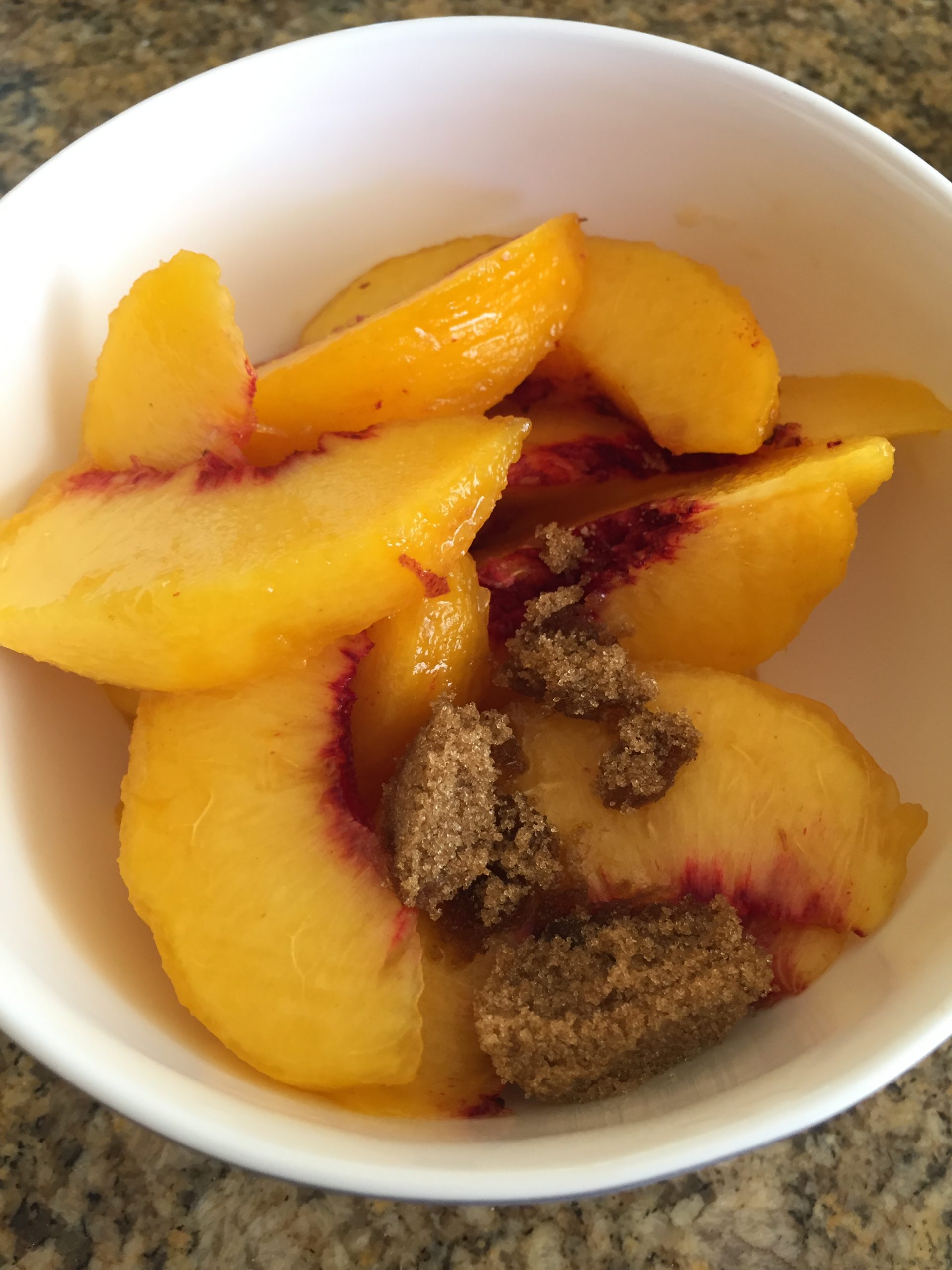 Fresh peaches with brown sugar. I use 1 tsp of brown sugar for 1 fresh peach to get that sweet , tart balance.