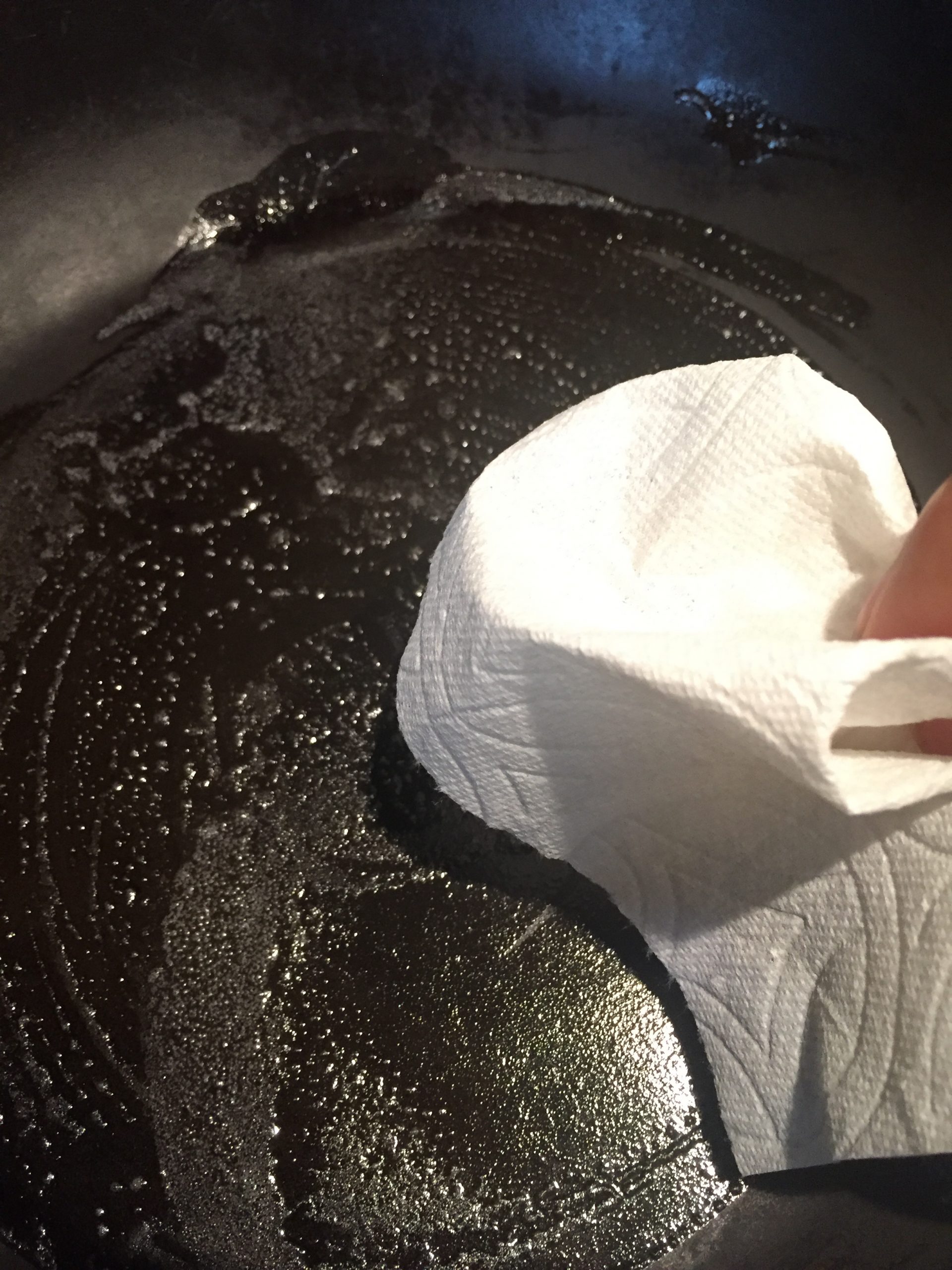 The skillet should be heated prior to pouring in the batter so that it adheres to the pan. When it adheres to the pan, swirl the pan to completely cover the base with a thin layer of batter.