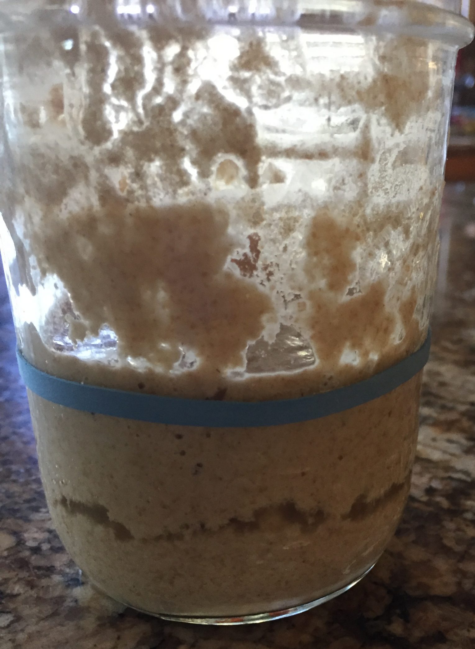 - Mix 80 grams of the above flour blend in a clear glass or plastic container. The rest of the flour blend will be used for future feedings.