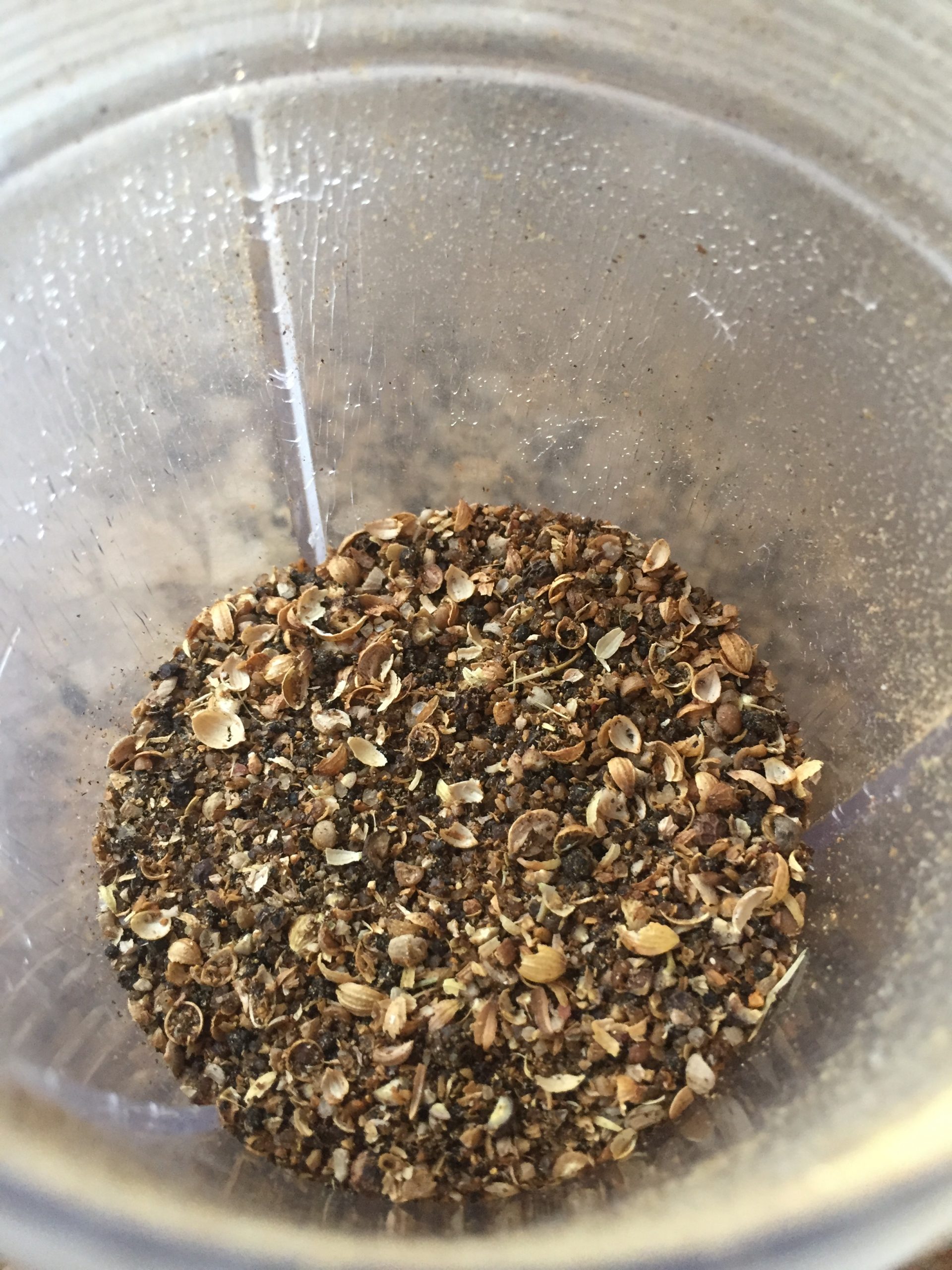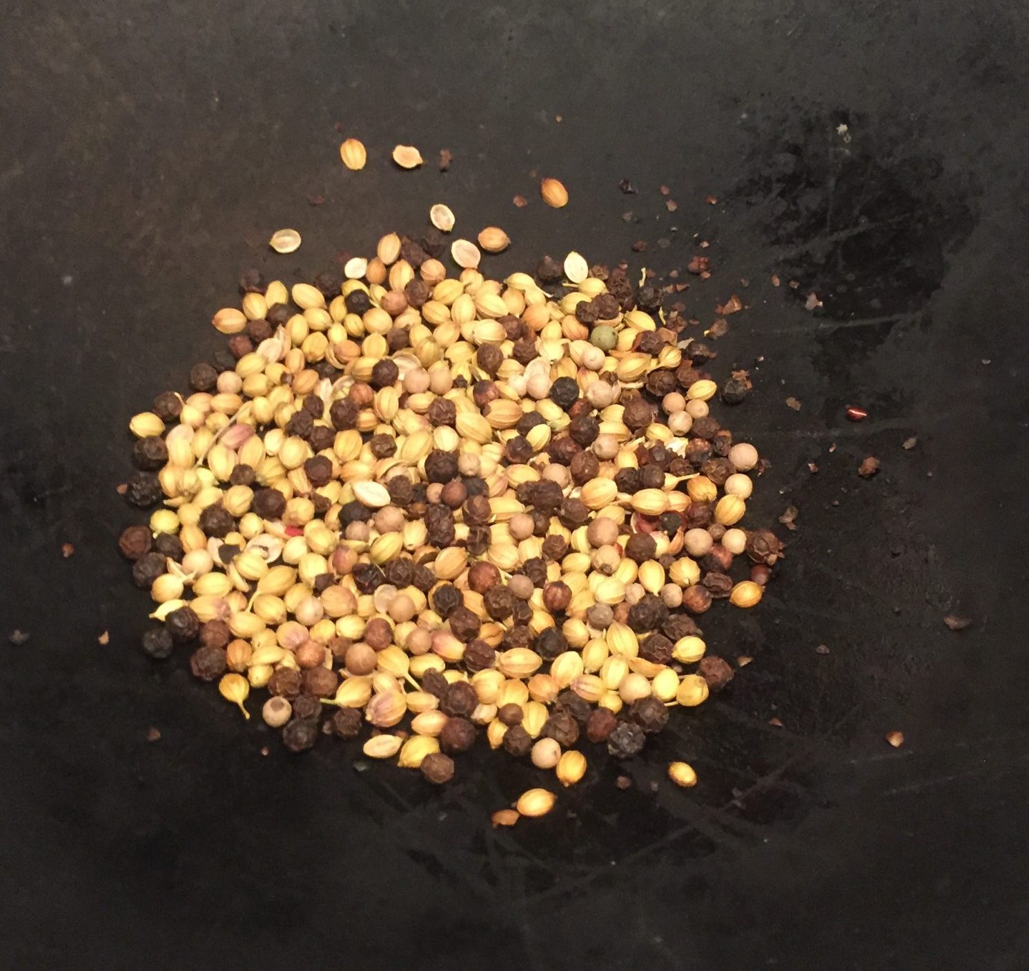 - Combine the salt, sugar, coriander seed and peppercorn together