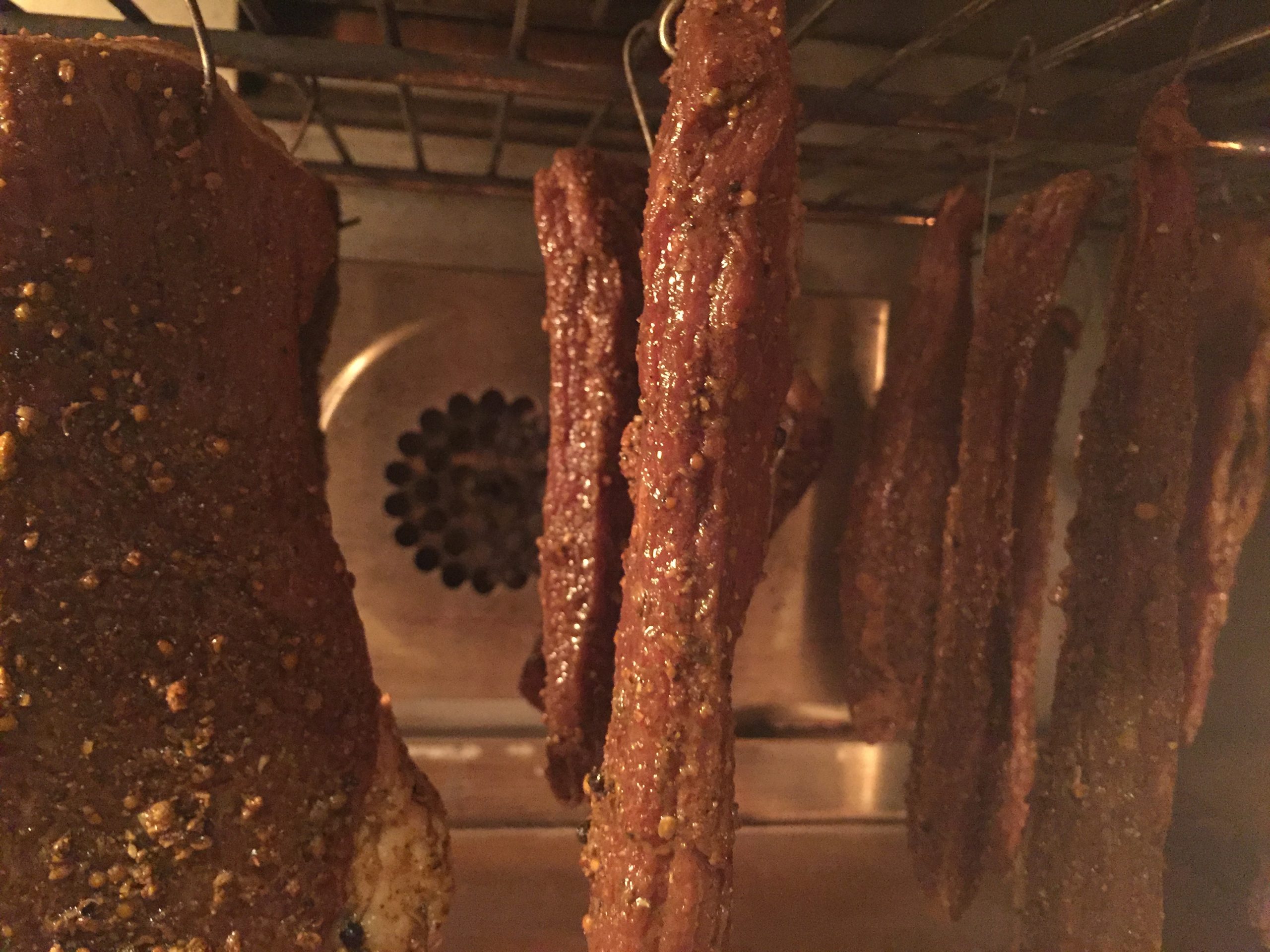 - Hang to dry in a convection oven with light and fan on for 48-72 hours depending on your preference of dryness. I usually take a pair of scissors and snip the end of one piece to taste doneness. This usually ends up with many snippings! See Biltong tips & tricks.