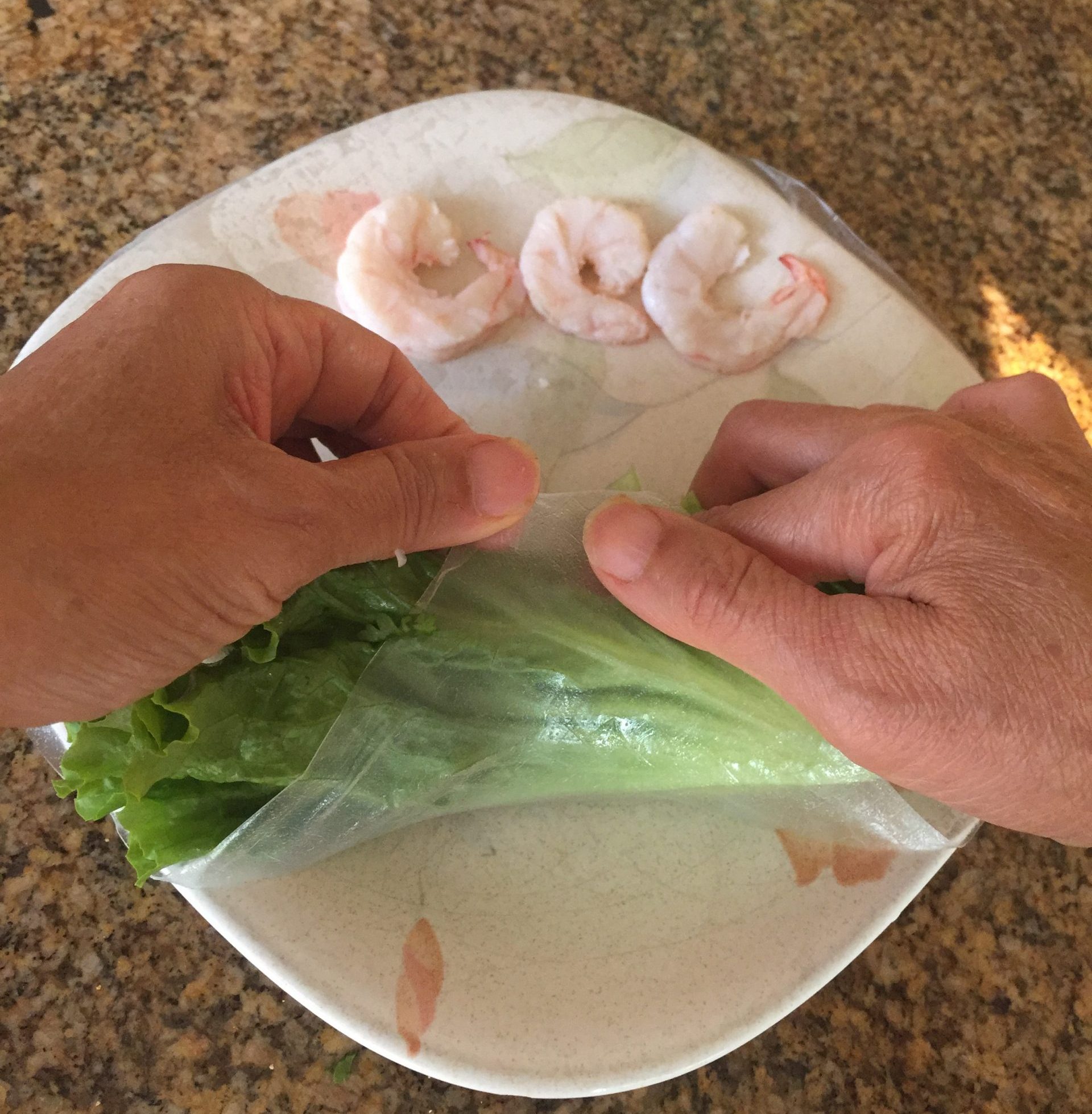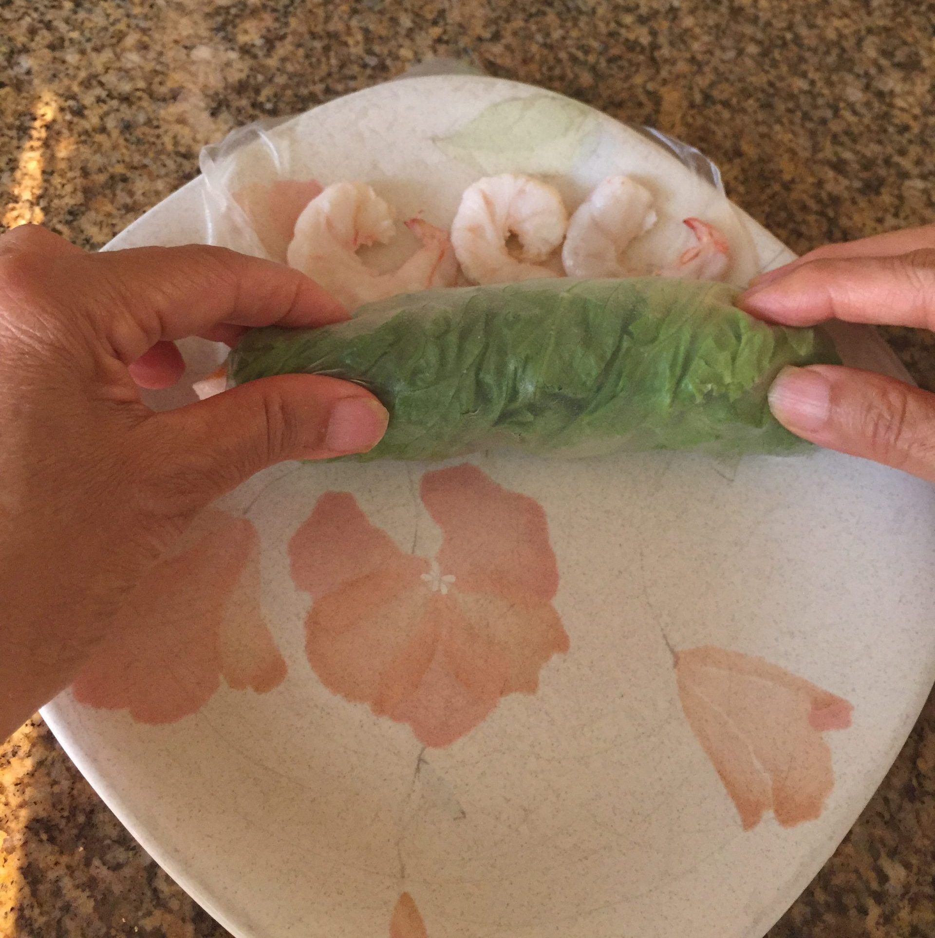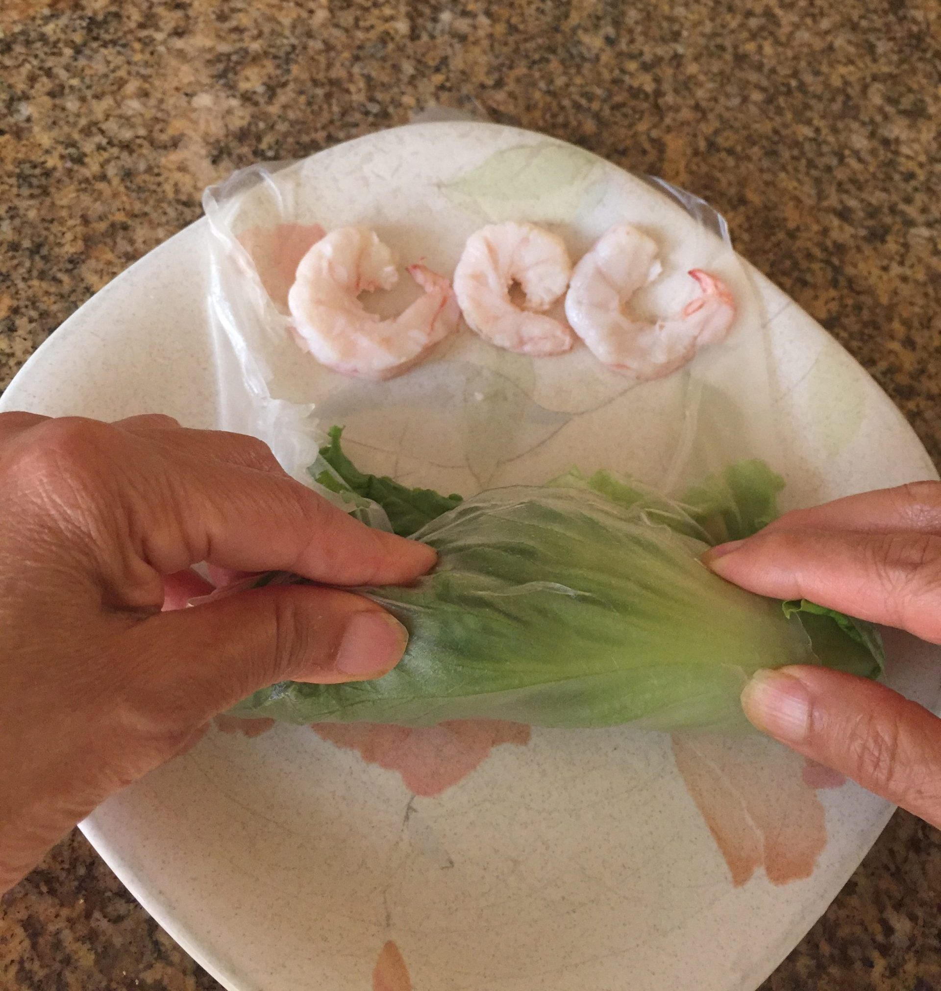 It is easier to first roll your lettuce, followed by the rice wrapper as shown in the video