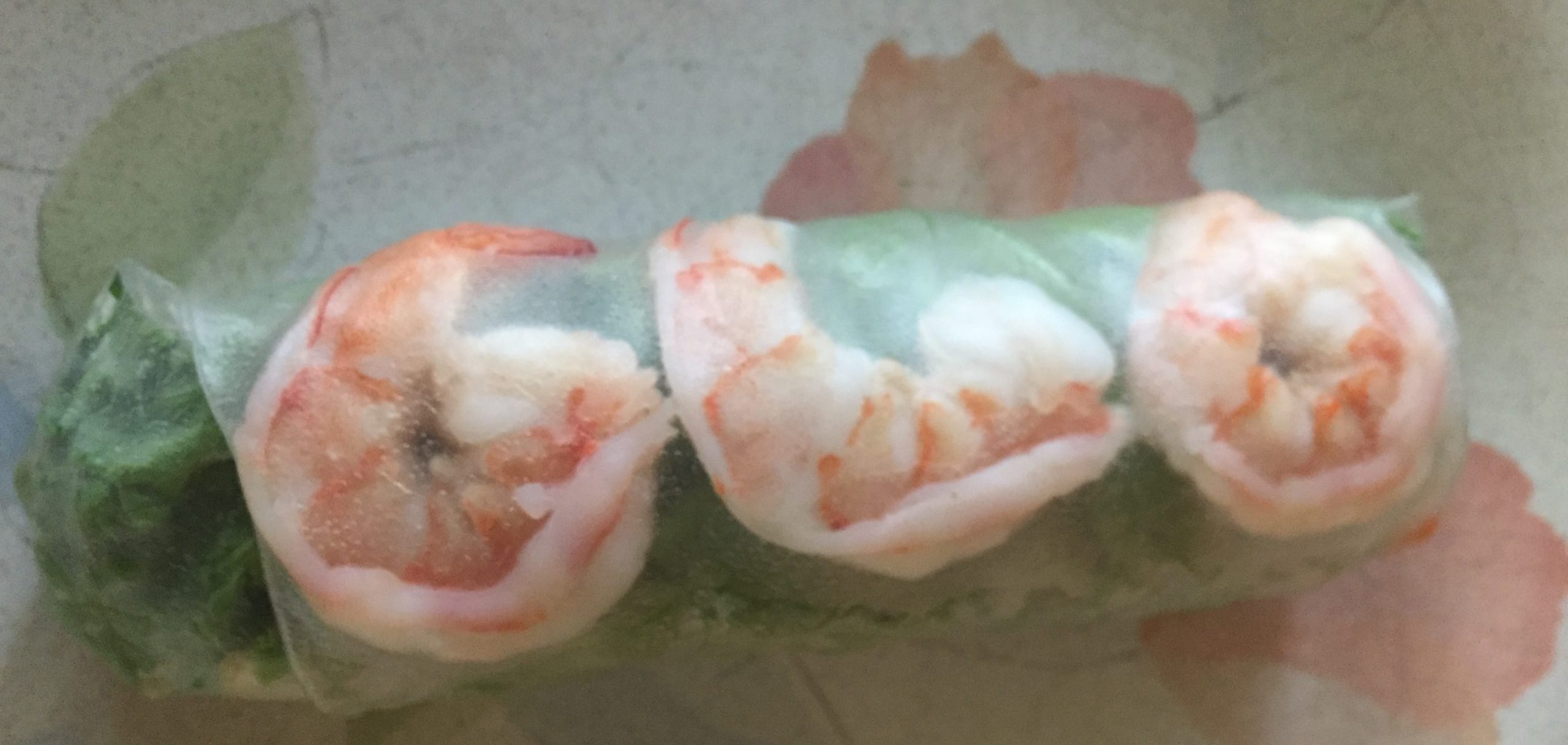 Traditional Vietnamese rolls are usually made with shrimp. I usually sprinkle salt on peeled and deveined shrimp, blanch it in water. When the shrimp turn color, run it under cold water to stop the cooking and halve the shrimp along the spine. I have also done it with BBQ pork and chicken. You can really use any protein of your choice.