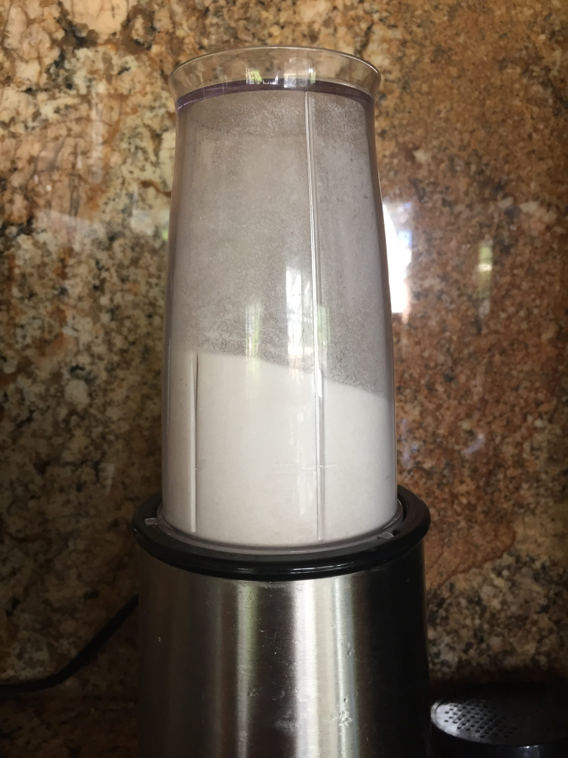 I learned that if you blend your sugar to a finer granule, (what is known as castor sugar in South Africa) the texture of the pavlova is smoother rather than "gritty" as the smaller sugar granules mix better with the egg white. However, do not grind the sugar to a powder as it will deflate your whipped egg whites. I usually use a compact blender that I normally use for my smoothies as this is not as powerful as the vitamix so I have more control over the granule size.